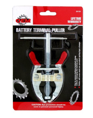 Two-jaw design for the removal of badly corroded battery cable clamps and small generator bearings without damaging the terminal. The jaws are designed to grip below the cable clamp.